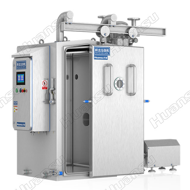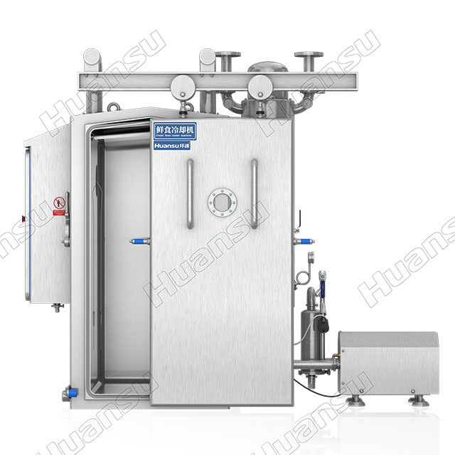其中環(huán)速真空冷卻機(jī)的智能控制系統(tǒng)主要由內(nèi)置壓力、溫度傳感器組成,可以即時性地將箱內(nèi)壓力和食品中心溫度反饋到控制系統(tǒng),并且保證準(zhǔn)確度。而PLC后臺控制,前端液晶觸摸屏操作。可直接看到反饋到前端的壓力、食品中心溫度等數(shù)據(jù)。在食物冷卻結(jié)束后,直接測量食物中心溫度和表面溫度,會發(fā)現(xiàn)兩者幾乎一致,這就能解釋為什么運(yùn)用環(huán)速真空冷卻機(jī)來冷卻不會改變食物的外觀、色澤和口感。不像傳統(tǒng)冷卻,會出現(xiàn)冷卻中外觀會大幅膨脹,而冷卻之后會縮小的問題。