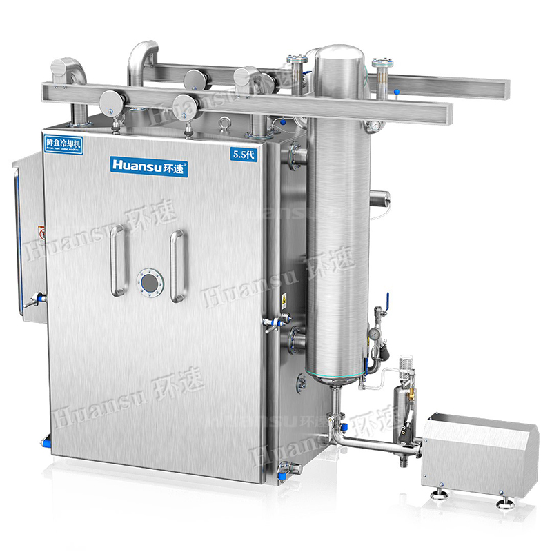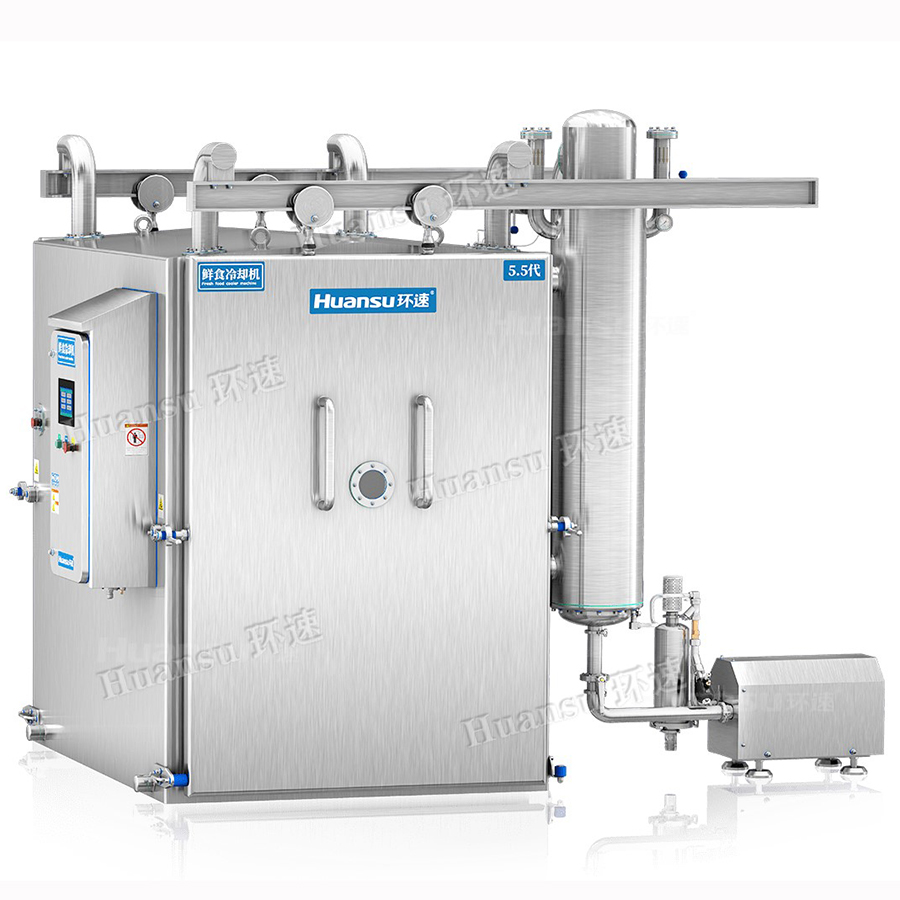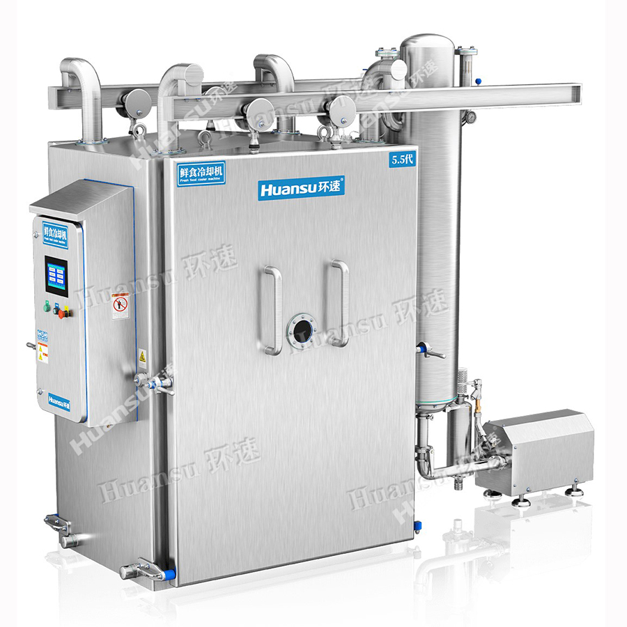 鮮食冷卻機與傳統(tǒng)冷卻機相比,冷卻時間縮短了1/40,高效的冷卻方式使產(chǎn)品降溫速度快,有效地避免了食物在長時間高溫狀態(tài)下的氧化、糊化等反應,防止了細菌的滋生,延長了產(chǎn)品保質(zhì)期。鴨脖預冷機配備了智能鮮食調(diào)節(jié)系統(tǒng),冷卻后產(chǎn)品表面與中心溫度近乎一致,保證了食物的美味口感。冷卻后產(chǎn)品微觀結構不會被破壞,口感與品相更佳。真空冷卻機節(jié)省空間、人工、水、電、汽,可根據(jù)不同季節(jié)智能切換生產(chǎn)模式,節(jié)約了能源。