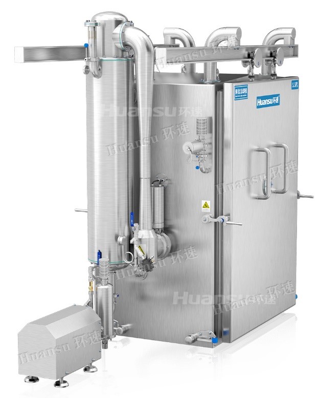 防護(hù)等級(jí)達(dá)到IP69K的真空冷卻機(jī),可直接進(jìn)行滅菌水洗、化學(xué)清洗與蒸汽滅菌,清洗便捷且占地面積小、無(wú)衛(wèi)生死角,對(duì)中央廚房加工車(chē)間環(huán)境沒(méi)有污染,創(chuàng)造了無(wú)菌的環(huán)境,不會(huì)讓設(shè)備污染成為中央廚房污染的源頭,保證了整個(gè)工廠(chǎng)車(chē)間的衛(wèi)生環(huán)境。