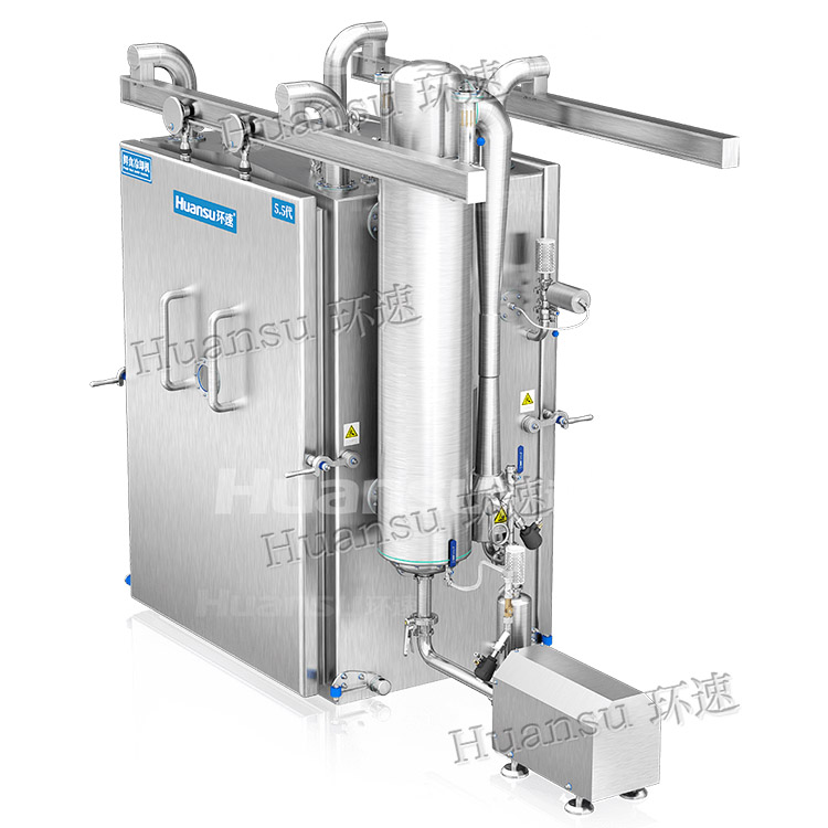 為了保證食品的安全衛(wèi)生,環(huán)速在設(shè)備的衛(wèi)生方面也做出了全方面的考慮。環(huán)速真空冷卻機(jī)防護(hù)等級IP69K,在使用后可直接進(jìn)行滅菌水洗、化學(xué)清洗與蒸汽滅菌,可以有效控制細(xì)菌的滋生,也保證了工廠車間的環(huán)境不會受到污染。同時使用蒸汽可以對真空冷卻機(jī)不能拆解清洗的管路進(jìn)行高溫蒸汽滅菌,來殺滅管道內(nèi)壁殘留的細(xì)菌微生物,防止食品被污染,保證我們的食品安全。同時環(huán)速真空冷卻機(jī)擁有智能防飛濺系統(tǒng),可以對菜肴中的湯汁進(jìn)行冷卻速度的控制,來防止湯汁飛濺,也能保證真空冷卻機(jī)得到潔凈清洗。