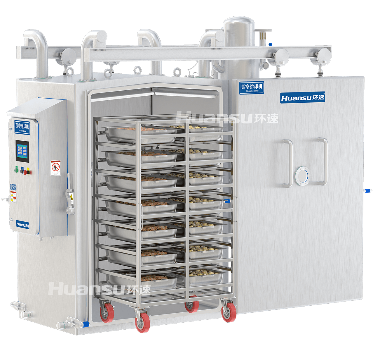 菌落防控:無(wú)菌保鮮,守護(hù)安全 傳統(tǒng)冷卻方式下,紅燒獅子頭在 30℃ - 50℃這個(gè)微生物容易滋生的溫度區(qū)間停留時(shí)間較長(zhǎng),霉菌、細(xì)菌等微生物大量繁殖,嚴(yán)重影響食品安全。環(huán)速真空冷卻機(jī)采用食品級(jí)不銹鋼腔體,確保獅子頭在冷卻過程中不與任何有害物質(zhì)接觸。同時(shí),它能夠快速將獅子頭的溫度降至安全范圍,穿越危險(xiǎn)溫區(qū),有效抑制菌落的滋生,延長(zhǎng)獅子頭預(yù)制菜的保質(zhì)期,讓消費(fèi)者吃得放心。