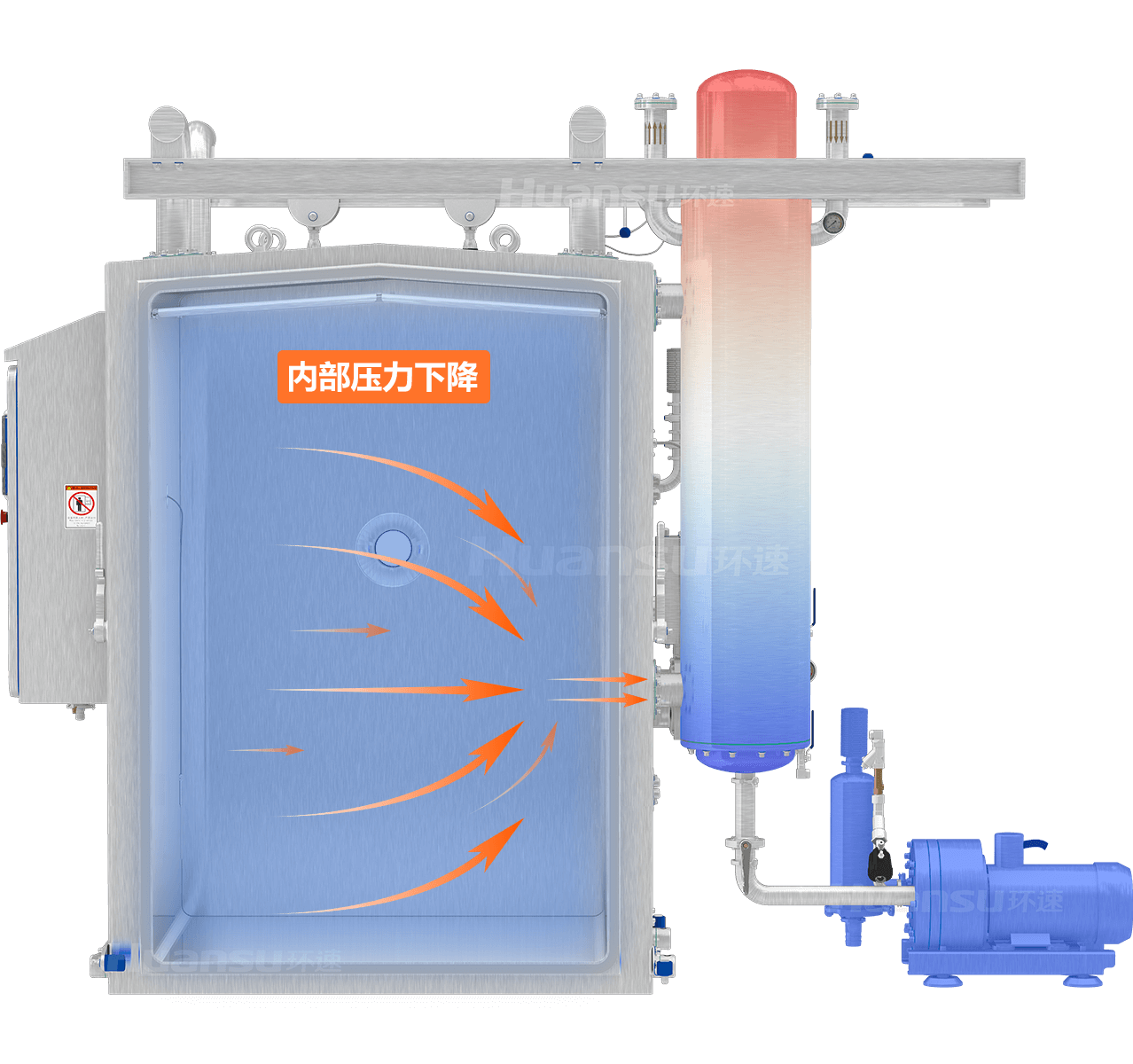 環(huán)速真空冷卻機(jī)運(yùn)用氣壓調(diào)節(jié)原理,通過(guò)降低密閉腔體內(nèi)的氣壓,使鴨脖內(nèi)部水分在低溫狀態(tài)下迅速汽化。這一過(guò)程中,水分汽化吸收大量熱量,實(shí)現(xiàn)鴨脖從內(nèi)到外的均勻降溫,整個(gè)冷卻過(guò)程僅需 3-18分鐘,無(wú)需依賴?yán)涿?,避免了傳統(tǒng)熱交換對(duì)鴨脖品質(zhì)的損傷,最大程度保留產(chǎn)品原始風(fēng)味。