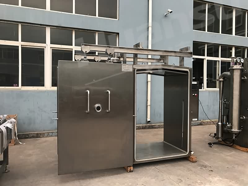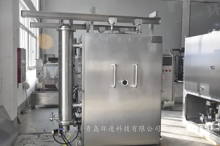 上海熟食真空冷卻機(jī)裝置的主體部件真空預(yù)冷裝置基本構(gòu)成:真空處理室、真空系統(tǒng)、制冷系統(tǒng)及控制系統(tǒng)四大部分組成。真空處理室即真空處理槽,通常分為筒形和箱型。內(nèi)側(cè)材質(zhì)根據(jù)冷卻物品性質(zhì)決定,304不銹鋼制成;外側(cè)由高強(qiáng)度矩形鋼管和槽鋼焊接并噴涂高強(qiáng)度防銹材料。真空系統(tǒng)即抽氣系統(tǒng),由真空泵和管路組成,現(xiàn)場(chǎng)連接電源和管道后,通過(guò)PLC程序控制系統(tǒng)實(shí)現(xiàn)全自動(dòng)化控制。制冷系統(tǒng)包括匹配的半封閉螺桿壓縮機(jī)或活塞壓縮機(jī)、冷凝器、蒸發(fā)器以及氣分、油分、儲(chǔ)液器和制冷管路等。真空預(yù)冷中,用水作為制冷劑。因?yàn)樗恼舭l(fā)潛熱大且不造成污染,滿(mǎn)足環(huán)保的需求,是較為理想的制冷劑。其中,小型真空預(yù)冷裝置制冷機(jī)組常選擇水冷、風(fēng)冷壓縮冷凝家族,大型裝置則常采用并聯(lián)系機(jī)組或按系統(tǒng)。