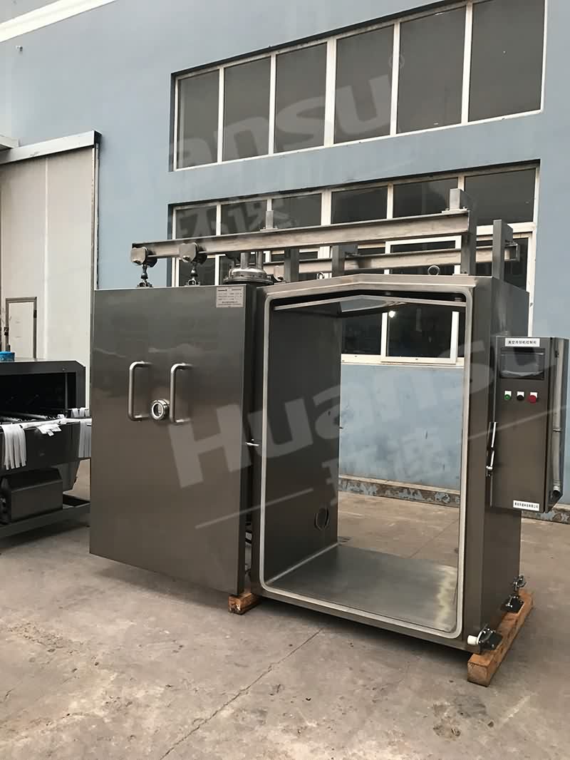 熟食真空冷卻機整體設計方案先進,配套合理、經濟,設備運行可靠,生產效率高,自動化程度高、能耗低,是熟食品生產中理想的配套設備。公司享有保護權。小型真空預冷裝置制冷機組常選擇水冷、風冷壓縮冷凝家族,大型裝置則常采用并聯(lián)系機組或按系統(tǒng)。制冷系統(tǒng)包括匹配的半封閉螺桿壓縮機或活塞壓縮機、冷凝器、蒸發(fā)器以及氣分、油分、儲液器和制冷管路等。真空預冷中,用水作為制冷劑。超市熟食真空快速冷卻機詳細可以咨詢相關銷售人員,裝置的主體部件真空預冷裝置基本構成:真空處理室、真空系統(tǒng)、制冷系統(tǒng)及控制系統(tǒng)四大部分組成。真空處理室即真空處理槽,通常分為筒形和箱型。內側材質根據(jù)冷卻物品性質決定,304不銹鋼制成;外側由高強度矩形鋼管和槽鋼焊接并噴涂高強度防銹材料。真空系統(tǒng)即抽氣系統(tǒng),由真空泵和管路組成,現(xiàn)場連接電源和管道后,通過PLC程序控制系統(tǒng)實現(xiàn)全自動化控制。因為水的蒸發(fā)潛熱大且不造成污染,滿足環(huán)保的需求,是較為理想的制冷劑。