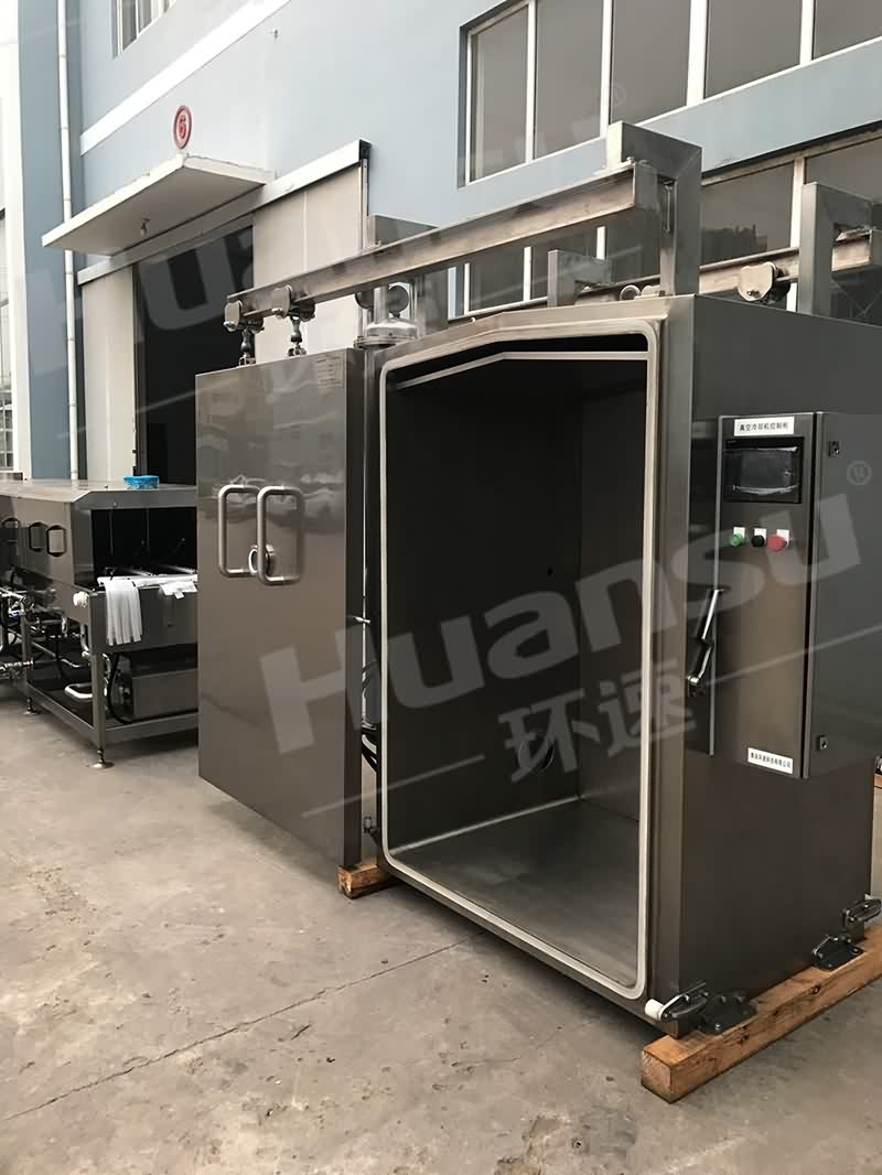 面包真空快速冷卻機(jī),隨著人們對(duì)真空冷卻技術(shù)的深入研究,相信真空冷卻技術(shù)在食品加工中會(huì)有更廣的應(yīng)用,采用真空冷卻技術(shù)能有效促使經(jīng)高溫加工后的烘焙制品在短時(shí)間內(nèi)迅速降溫,快速通過細(xì)菌容易繁殖溫度帶,從而延長(zhǎng)儲(chǔ)藏期,保證食品的營(yíng)養(yǎng)。當(dāng)設(shè)備內(nèi)壓在改變時(shí),在低內(nèi)壓階 段并不因低壓的關(guān)系而停止面包體積的膨大。加強(qiáng)面包真空冷卻機(jī)原理的研究,擴(kuò)大其在食品行業(yè)的應(yīng)用范圍。真空處理室即真空處理槽,通常分為筒形和箱型。面包冷卻狀態(tài)變化面團(tuán)溫度上升時(shí),內(nèi)壓的產(chǎn)生并不均勻,當(dāng)面包降溫終了等階段,內(nèi)壓降低。上海面包真空冷卻機(jī)廠家銷售詳情可以上網(wǎng)查詢裝置的主體部件真空預(yù)冷裝置基本構(gòu)成:真空處理室、真空系統(tǒng)、制冷系統(tǒng)及控制系統(tǒng)四大部分組成。內(nèi)側(cè)材質(zhì)根據(jù)冷卻物品性質(zhì)決定,304不銹鋼制成;外側(cè)由高強(qiáng)度矩形鋼管和槽鋼焊接并噴涂高強(qiáng)度防銹材料。真空系統(tǒng)即抽氣系統(tǒng),由真空泵和管路組成,現(xiàn)場(chǎng)連接電源和管道后,通過PLC程序控制系統(tǒng)實(shí)現(xiàn)全自動(dòng)化控制。制冷系統(tǒng)包括匹配的半封閉螺桿壓縮機(jī)或活塞壓縮機(jī)、冷凝器、蒸發(fā)器以及氣分、油分、儲(chǔ)液器和制冷管路等。