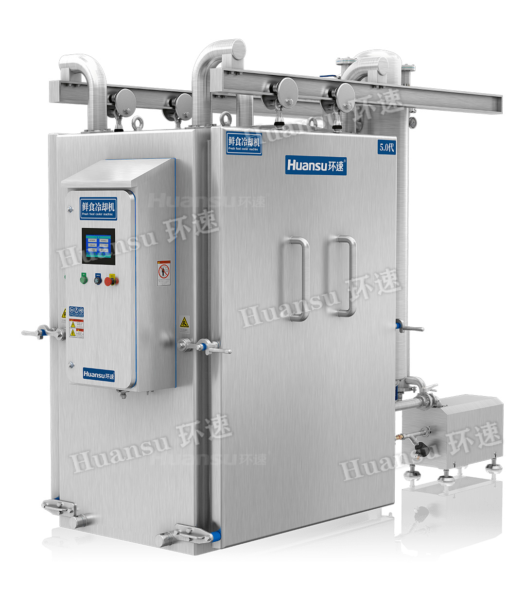 真空冷卻機(jī)通過水環(huán)泵、蒸汽射流和高效率換熱器的三級(jí)抽真空形式,實(shí)現(xiàn)了快速、高效率、節(jié)能的真空系統(tǒng),能用較低的能源使真空室內(nèi)快速的達(dá)到真空狀態(tài),使食品內(nèi)的熱量可以在短時(shí)間內(nèi)釋放出來,實(shí)現(xiàn)了節(jié)能低耗的效果。歐洲IP69K衛(wèi)生等級(jí)隔離艙,增加了設(shè)備的衛(wèi)生等級(jí),避免了食品在真空箱內(nèi)被二次污染的可能性。