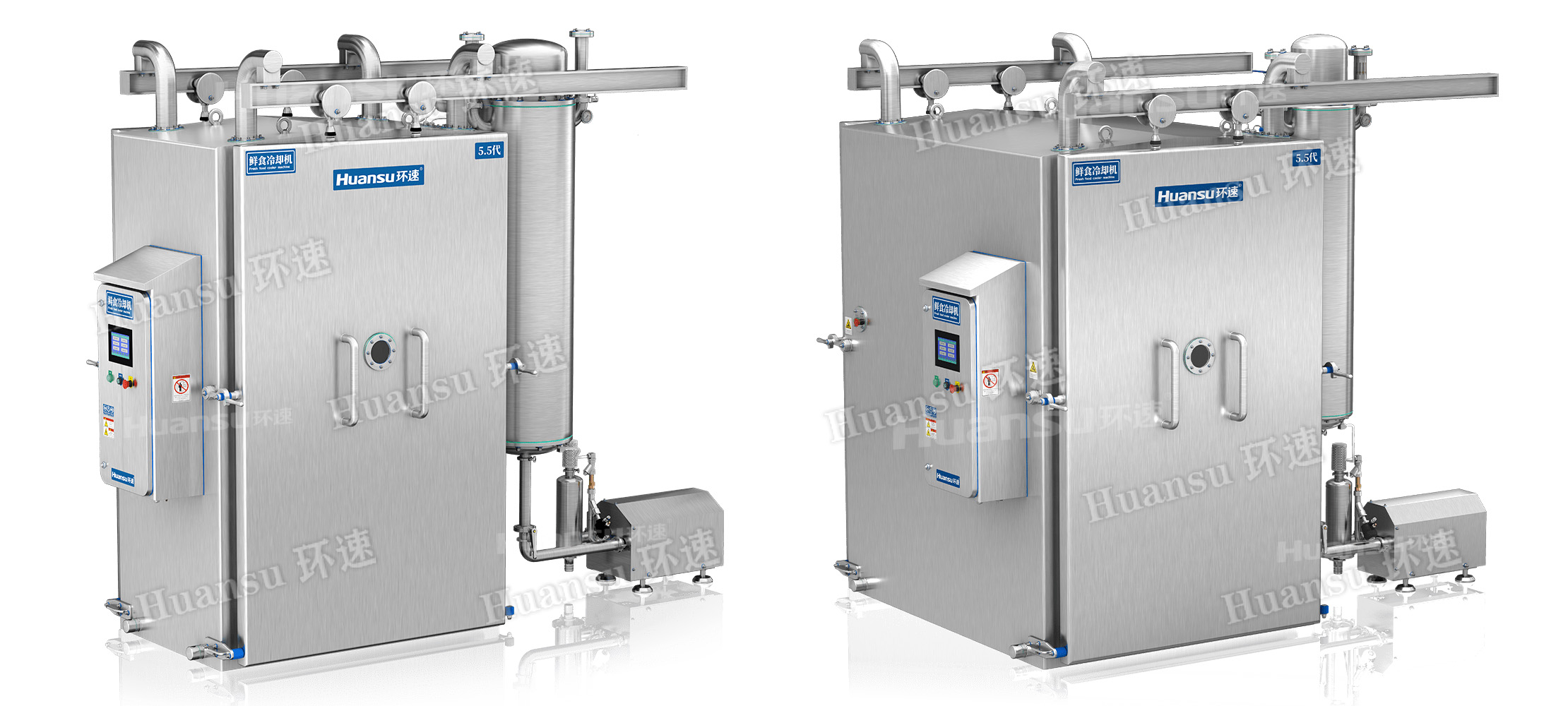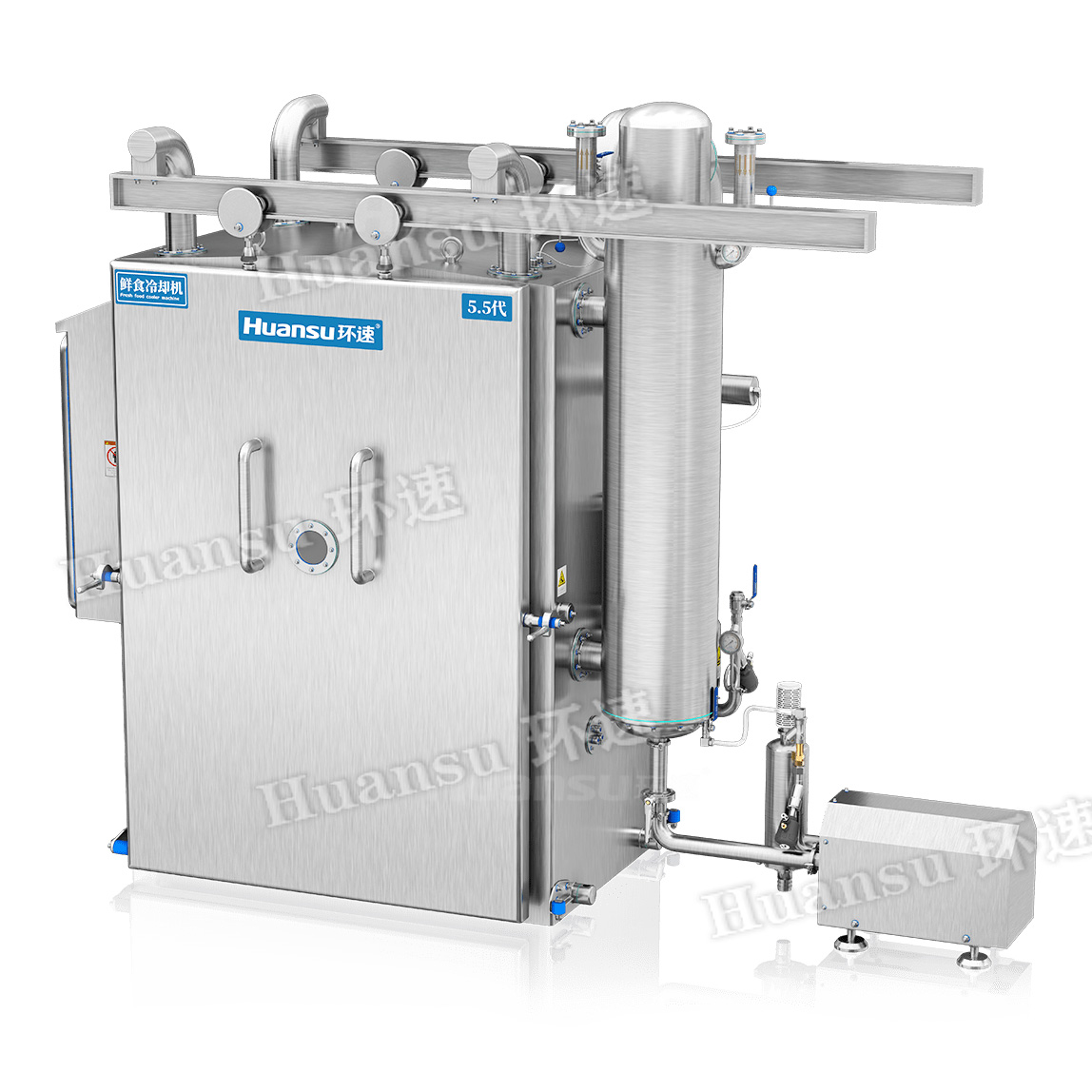 鮮食冷卻機(jī)通過水環(huán)泵、蒸汽射流和高效率換熱器的三級抽真空形式,實(shí)現(xiàn)了快速、高效率、節(jié)能的真空系統(tǒng),能用較低的能源使真空室內(nèi)快速的達(dá)到真空狀態(tài),使食品內(nèi)的熱量可以在短時間內(nèi)釋放出來,實(shí)現(xiàn)了節(jié)能低耗的效果。 歐洲IP69K衛(wèi)生等級隔離艙,增加了設(shè)備的衛(wèi)生等級,避免了食品在真空箱內(nèi)被二次污染的可能性。