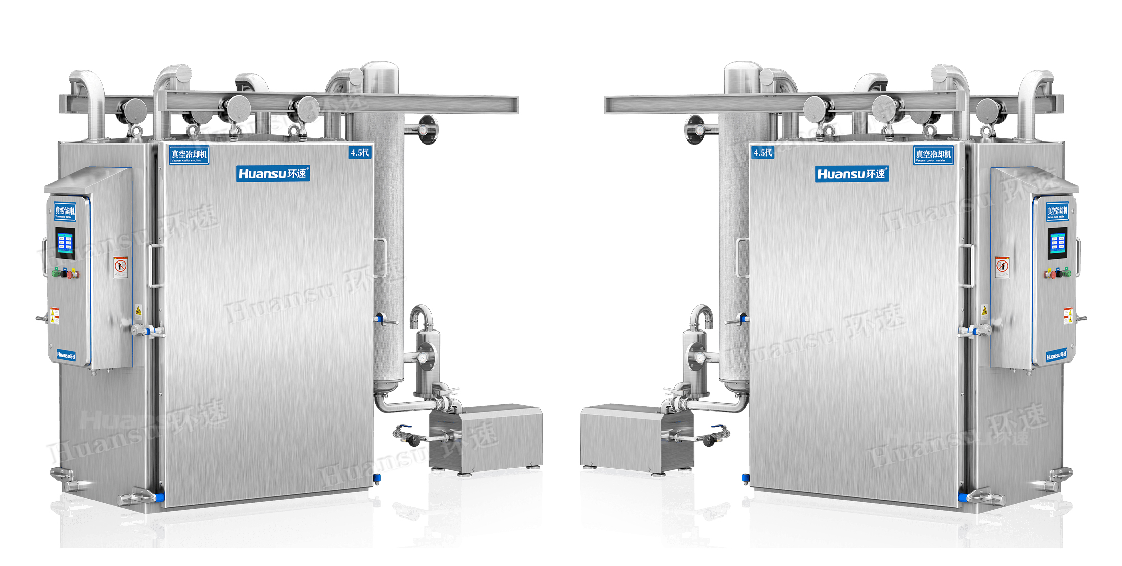 真空預(yù)冷機(jī)通過水環(huán)泵、蒸汽射流和高效率換熱器的三級抽真空形式,實現(xiàn)了快速、高效率、節(jié)能的真空系統(tǒng),能用較低的能源使真空室內(nèi)快速的達(dá)到真空狀態(tài),使食品內(nèi)的熱量可以在短時間內(nèi)釋放出來,實現(xiàn)了節(jié)能低耗的效果。