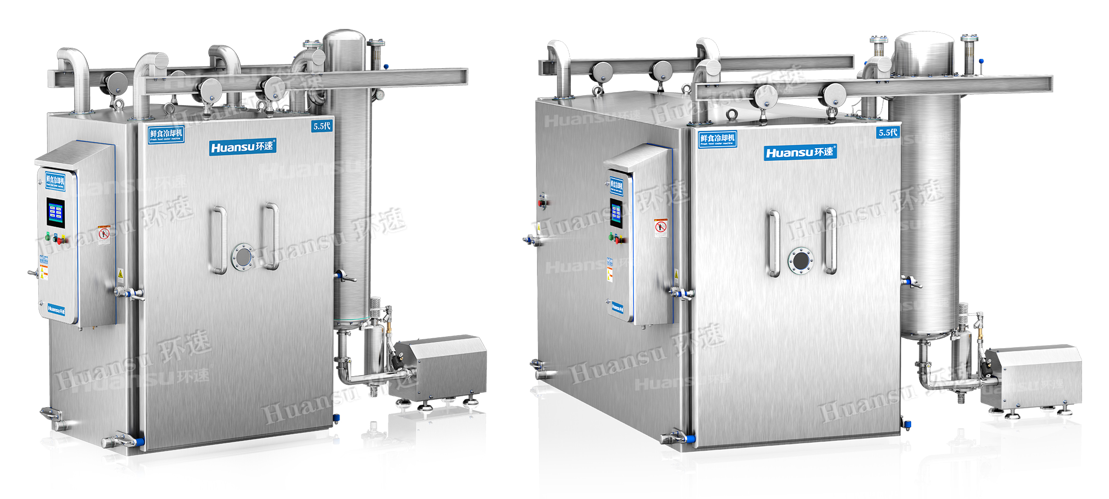 鮮食冷卻機(jī)通過(guò)水環(huán)泵、蒸汽射流和高效率換熱器的三級(jí)抽真空形式,實(shí)現(xiàn)了快速、高效率、節(jié)能的真空系統(tǒng),能用較低的能源使真空室內(nèi)快速達(dá)到真空狀態(tài),使食品內(nèi)的熱量可以在短時(shí)間內(nèi)釋放出來(lái),實(shí)現(xiàn)了節(jié)能環(huán)保的效果。歐洲IP69K衛(wèi)生等級(jí)隔離艙,增加了設(shè)備的衛(wèi)生等級(jí),避免了食品在真空箱內(nèi)被二次污染的可能性。