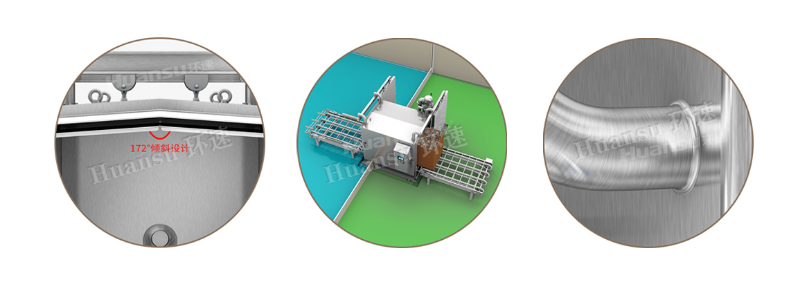2.可靠衛(wèi)生:防護(hù)等級IP55-IP65,頂部采用172°衛(wèi)生傾角設(shè)計(jì),防止水滴滴落在食物上,造成冷卻過程的二次污染,方便清洗
