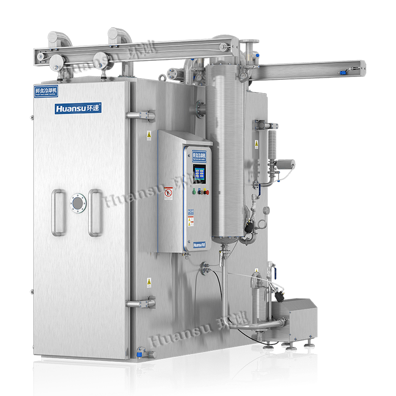 整機采用醫(yī)藥標準加工設計,管路采用無縫焊接技術,無衛(wèi)生死角,避免微生物超標。頂部采用172°衛(wèi)生傾角設計,防止水珠滴落在食物上,造成冷卻過程的二次污染,方便拆解清洗。