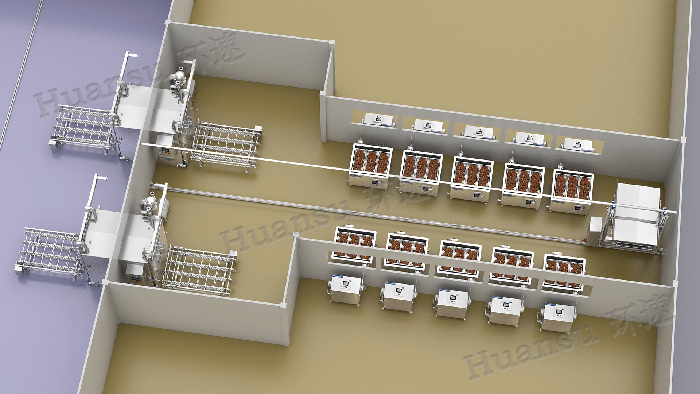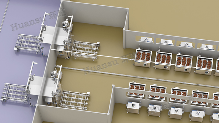 鮮食醬鹵冷卻線,用于大批量食材的煮制、鹵制、冷卻,實(shí)現(xiàn)智能化醬鹵生產(chǎn)線,無需人工干預(yù)一鍵設(shè)置自動(dòng)煮制、鹵制、冷卻工藝,智能控溫系統(tǒng),形成溫度曲線,有助于產(chǎn)品標(biāo)準(zhǔn)化發(fā)展,符合歐盟衛(wèi)生等級(jí)IP69K標(biāo)準(zhǔn)。